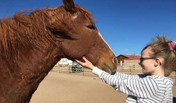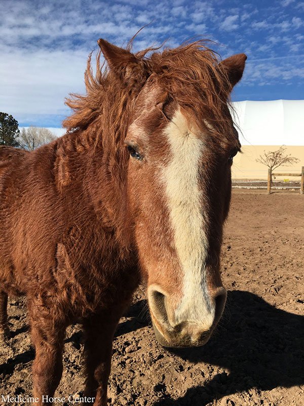 Indi is our 20 year old Bashkir curly mare. Although she is the oldest horse in the herd, she is spirited, curious, and honest in her connections with horses and people alike. She gently teaches healthy boundaries and her calm, caring personality helps ground everyone she meets.