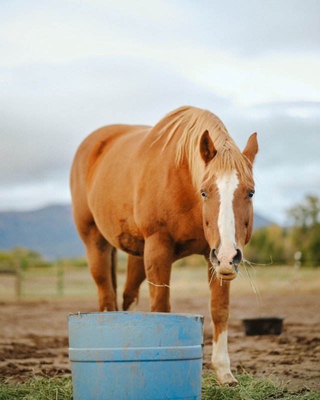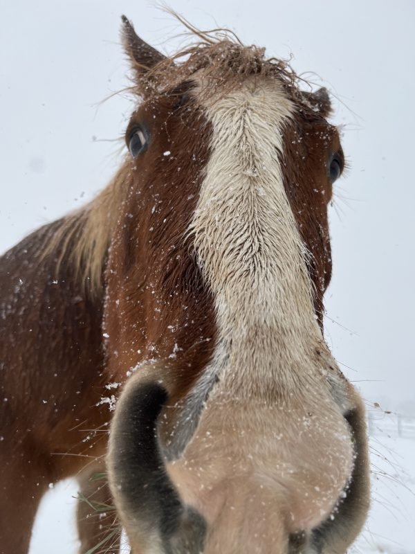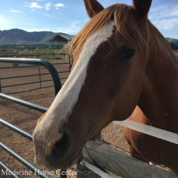 Quinn is a spirited mare who draws clients in with her friendly, open demeanor. She has been with Medicine Horse since she was three months old, and has become a talented therapy horse. She does not like to be alone, and will stand patiently with clients who need company. Her playfulness shines through at meal times as she nickers and prances impatiently for hay.